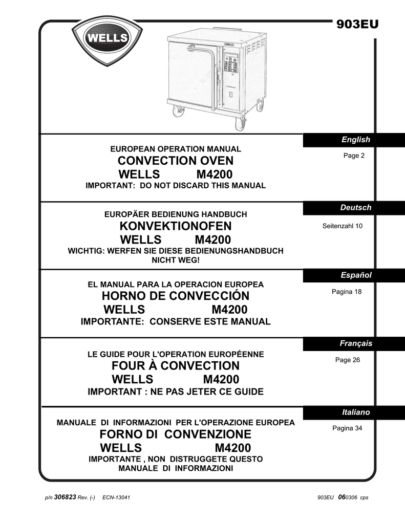 M903 2m 307323 owners manual m4200 m4200eu the m4200 convection oven manufactured by wells for sale to mcdonald s inc.