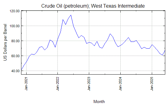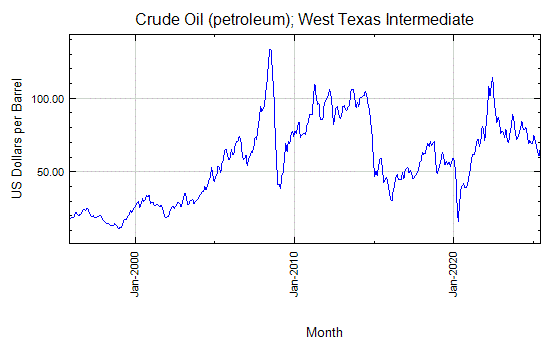 Monthly price chart and freely downloadable data for crude oil petroleum.