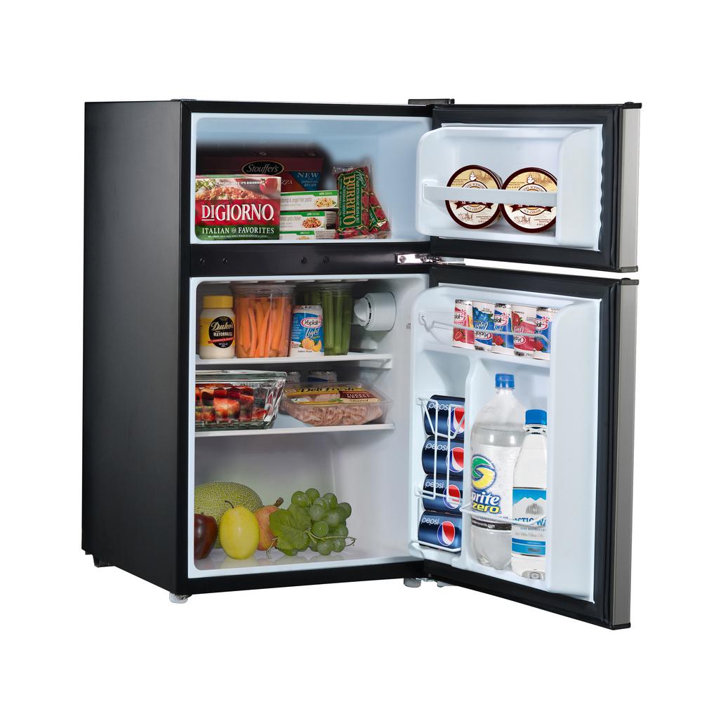 Whirlpool 3 1 Cu Ft Mini Fridge In Stainless Steel With Dual Door True Freezer Whr31ts4e The Home Depot