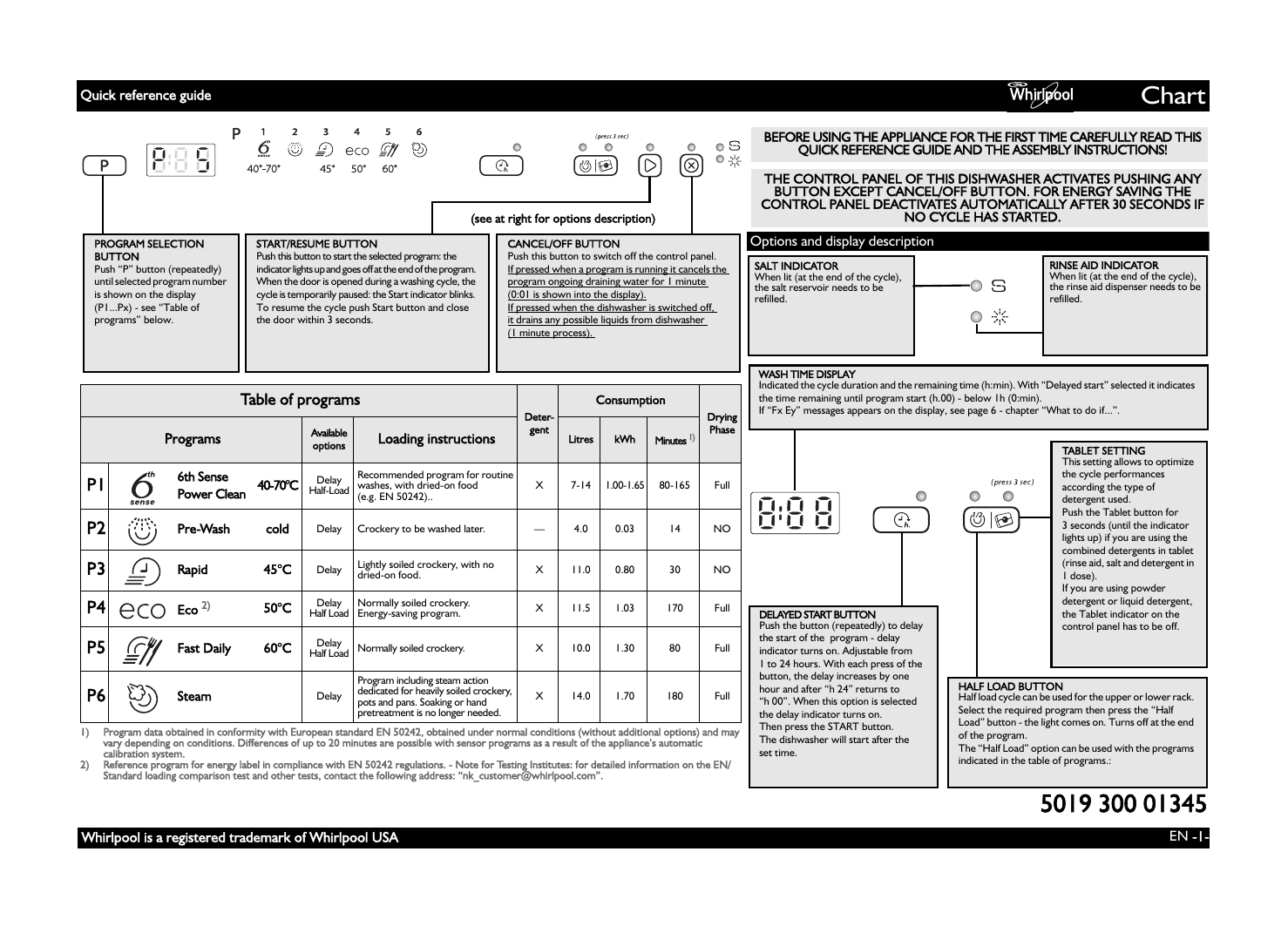 Program selection button push programs button repeatedly until the indicator of the required program lights up see table of programs below.