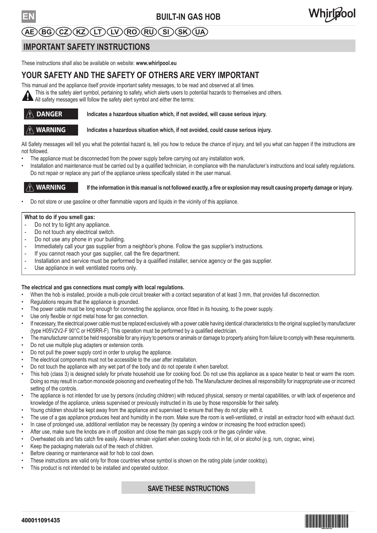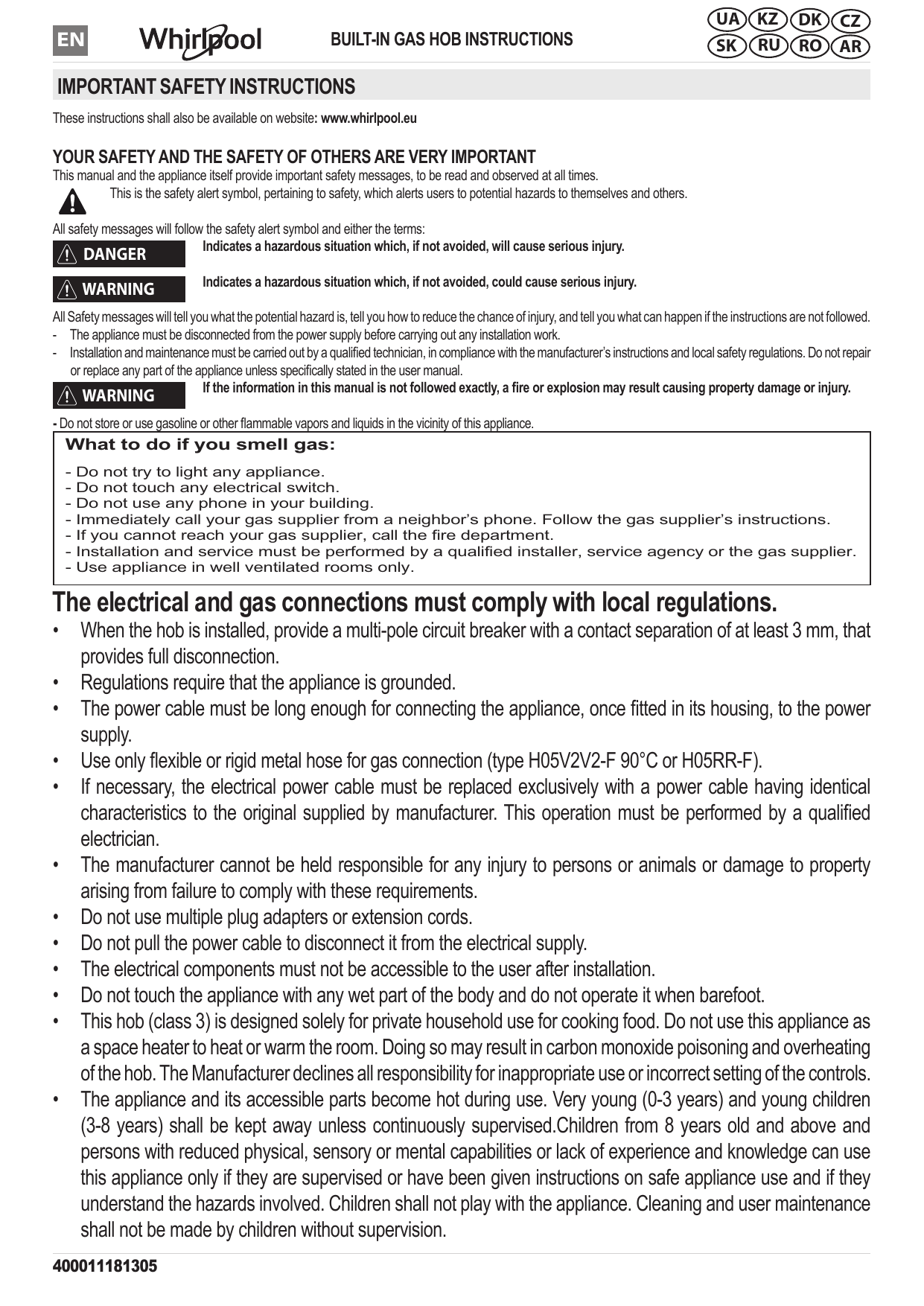 Whirlpool s user manuals are included with your product on delivery.