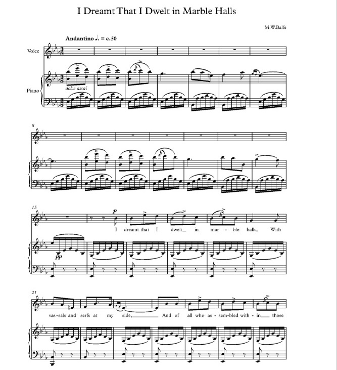The best known aria from the piece is i dreamt i dwelt in marble halls in which the main character arline describes her vague memories of her childhood it has been recorded by many artists most famously by.